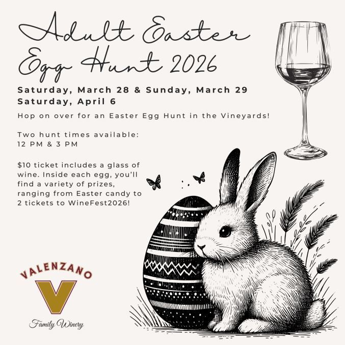 Hop on over for an Easter Egg Hunt in the Vineyards! Two hunt times available: 12:00PM and 3:00PM.